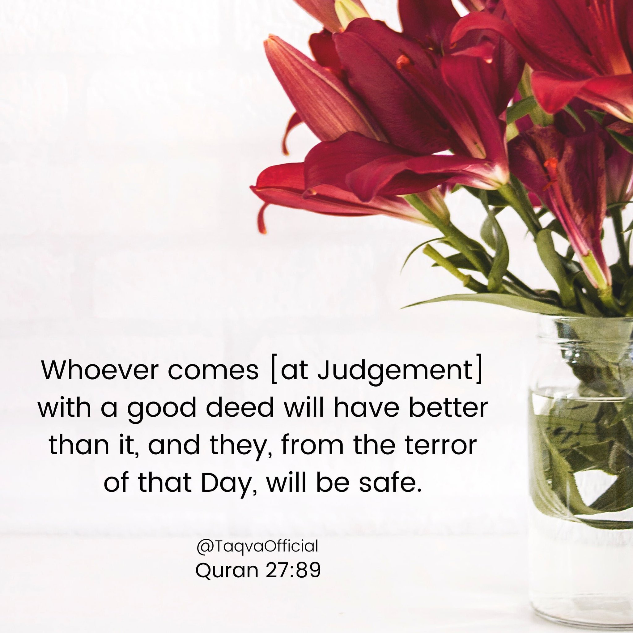 טוויטר Islamic Quotes By Taqva בטוויטר Whoever Comes At Judgement With A Good Deed Will Have Better Than It And They From The Terror Of That Day Will Be Safe Quran